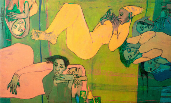 “I celebrate the mysteries and the strength of the woman who believes with every fiber of her being, overcoming her fatal reality. To be a witness of the human condition, of being a woman, that from the material marginality rises with strength to overcome the ups and downs of everyday life with the impulse that only something above our world can overcome, placing that power in the manifested spirit, showing the solemnity of the gesture, a look, a change in the face... what body language expresses is what disturbs me and that I seek to reflect in my work. I have the certainty that there is something, a supernatural force or superior power invisible but tangible, that manipulates the threads of our humanity, often misery, the sadness of carrying a burden, imposed circumstances, whose only salvation or redemption is possible through the belief and devotion and that-known-unknown, invisible or visible only to those who want to see things — that by candlelight, altars, colored ornaments, prayers, songs and ritual dances are magically manifested and comply with that, beings that please what is desired ... those mysteries, hidden entities, the magic present in all manifestations originates in me the need to communicate these forms of feelings through drawing, color and composition in which I play with the placement of figures on all sides, because I believe that, like the reality of the moment, many realities coexist in the same space and time... I look at myself in the painting and I want to manifest the sensation of weight, the weight of our ancestral beliefs present in each magical ritual, religious practice and I aspire to the observation of my work in front of the spectator with the soul of people -their own- that has been forged with centuries of calamity and learn to value the legacy of the ancient heritage, resulting in what we are, in what I am.”